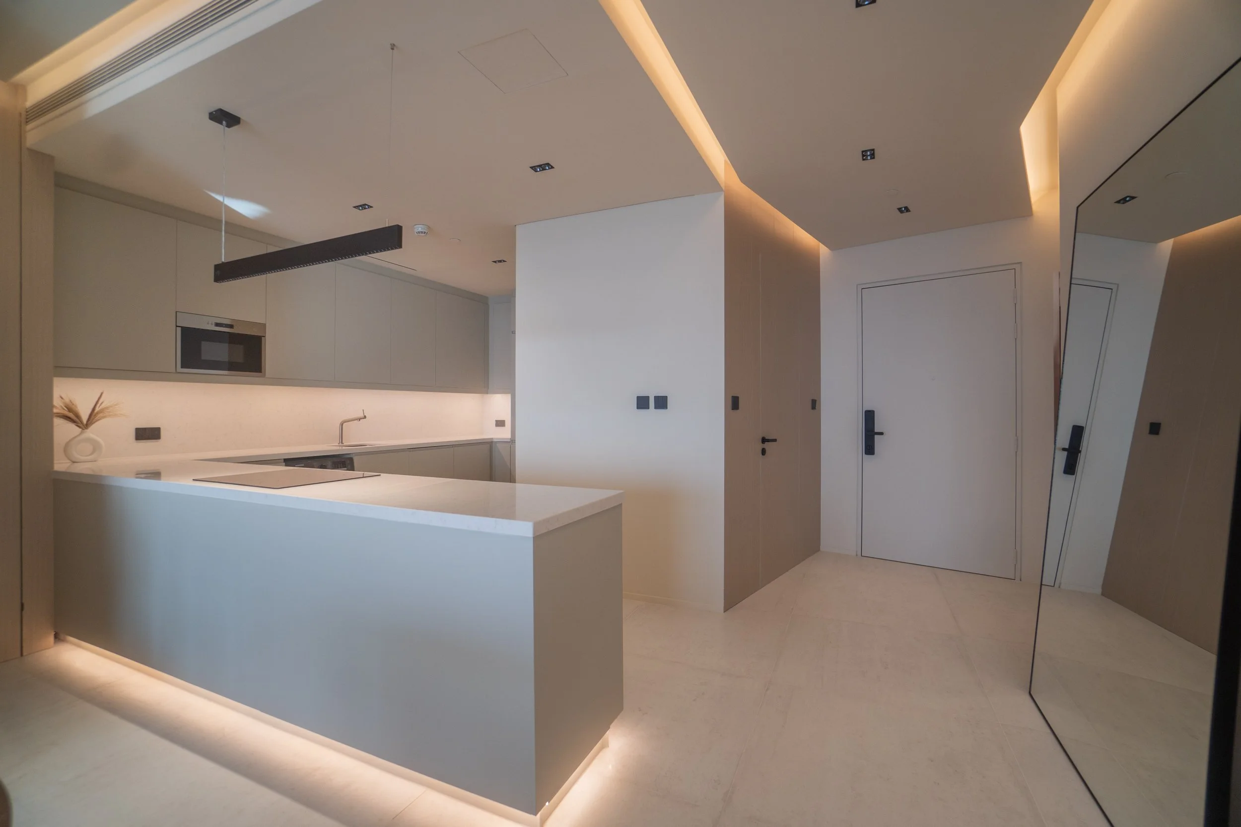 In the heart of Dubai Marina, this apartment was transformed into a warm sanctuary. Rich wood tones and open spaces invite the sunset in, filling the home with a soft, natural glow. The kitchen was opened to become the heart of the space, and lighting was reworked to shift with every moment, bright when needed, intimate when it matters. The result is a home that feels as alive as it looks.